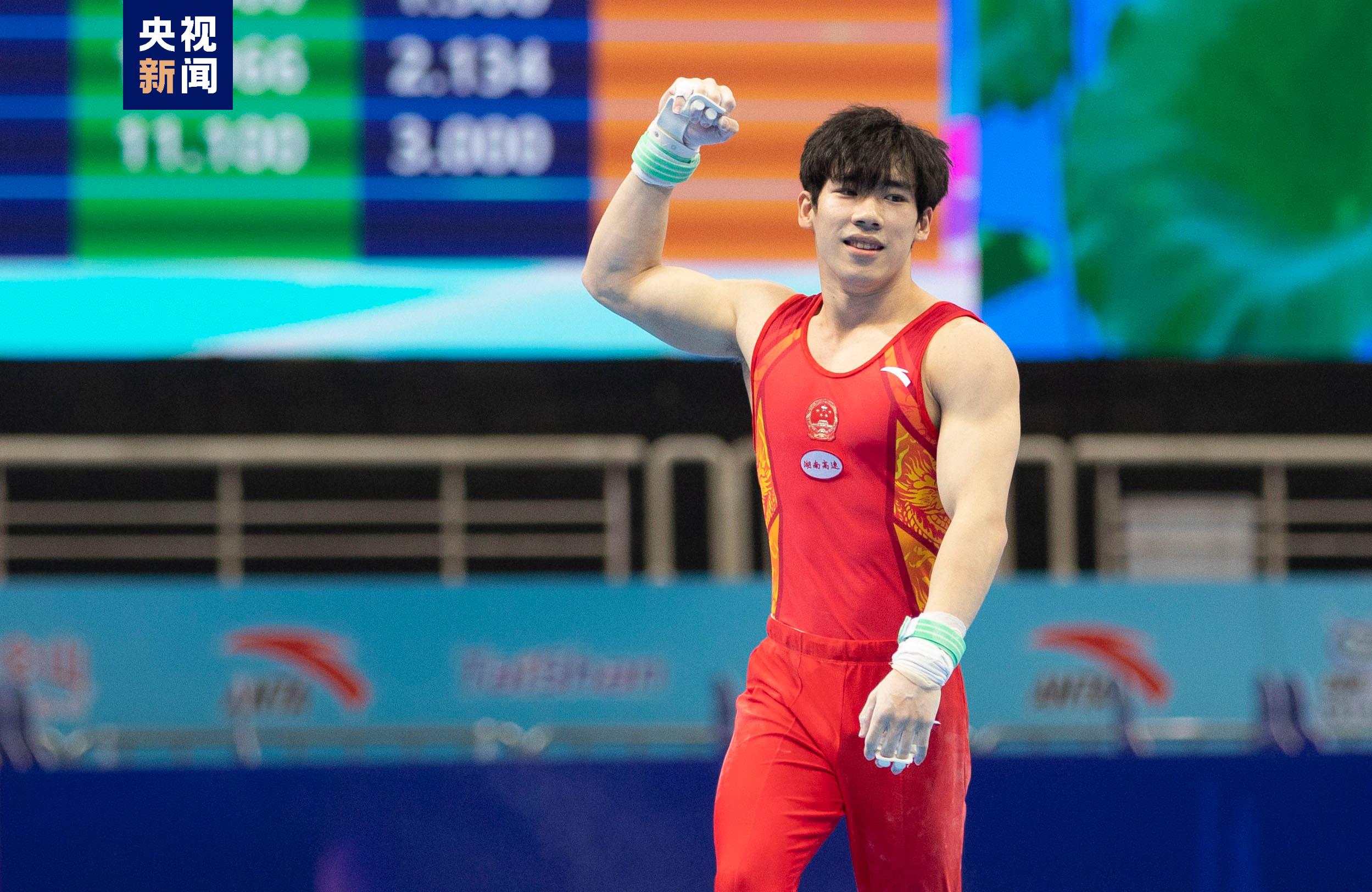 男子单杠项目,张博恒继男子个人全能项目后,在单杠项目收获个人第二金,他的湖南队队友廖家磊获得亚军,四川队李鸿颜获得季军。