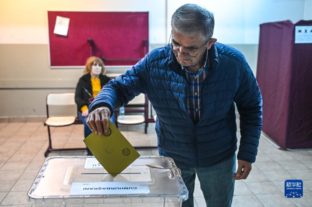 5月28日,一名男子在土耳其安卡拉一处投票站投票。