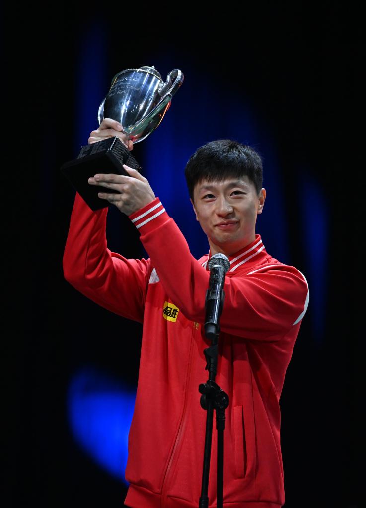 当日两场单打决赛之间,国际乒联为2015年至2019年完成世乒赛男单三连冠的马龙颁发了复刻圣·勃莱德杯。