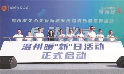 现场,暖“新”集市同步开业,举行了温州市出租车(网约车)行业能级工资专项集体合同签订仪式和护航亚运会·温州市新就业形态劳动者志愿服务先锋号授旗仪式,并在全城发布了《关心关爱新就业形态劳动者》倡议书。