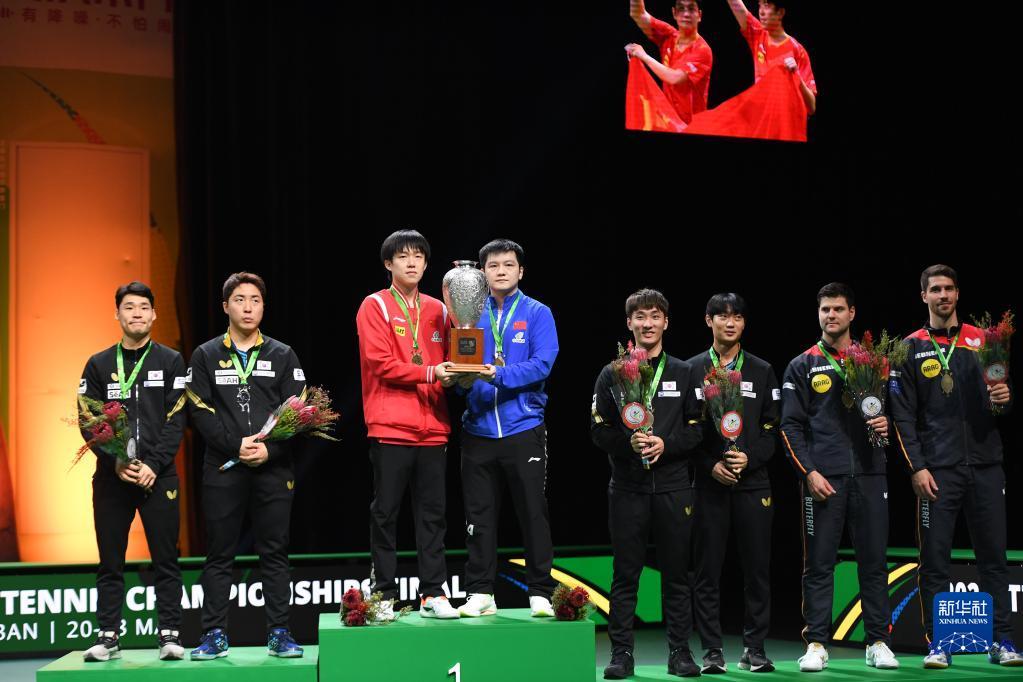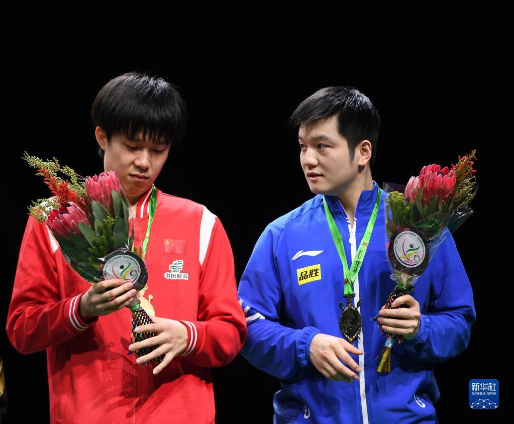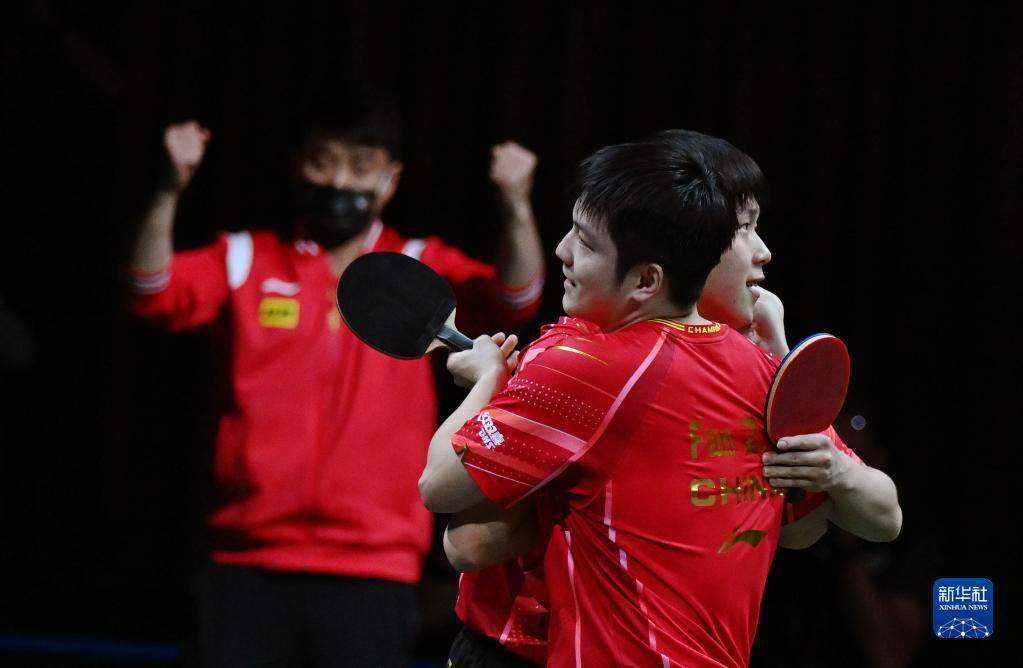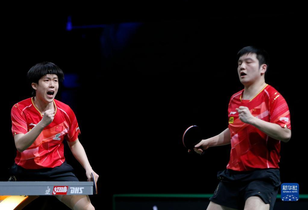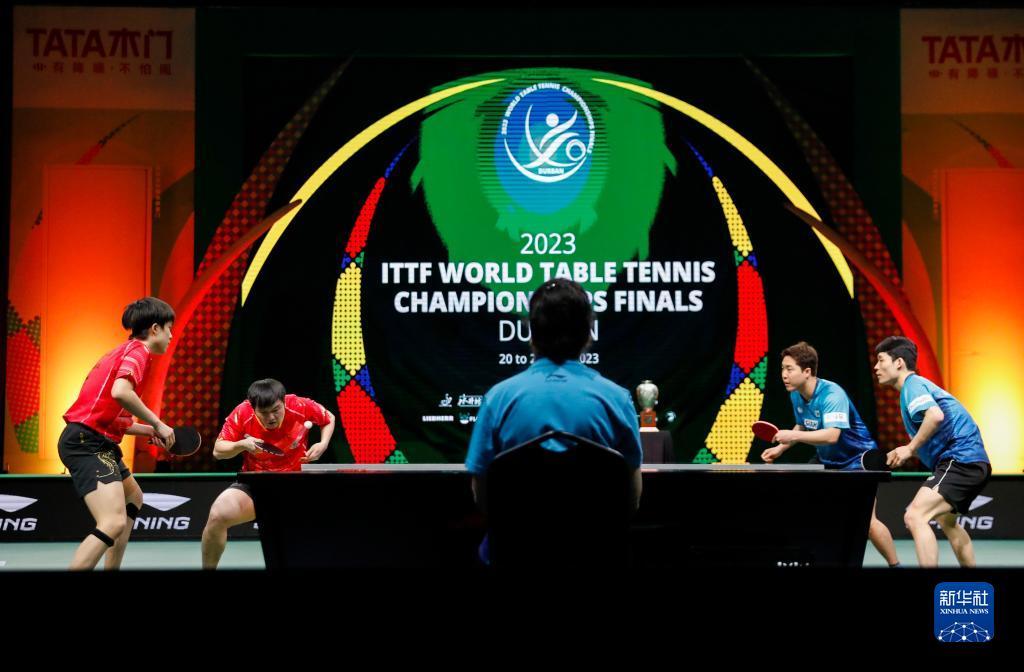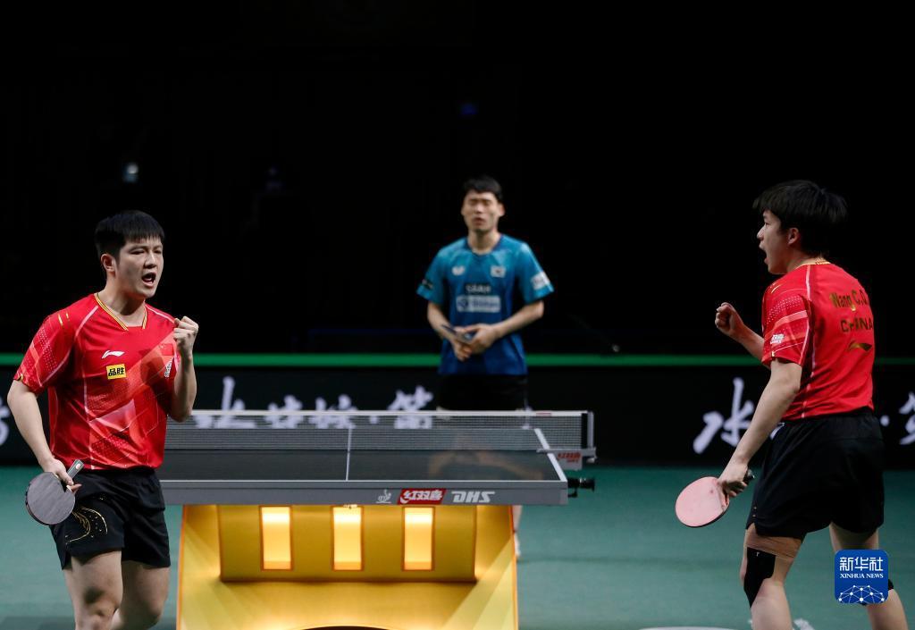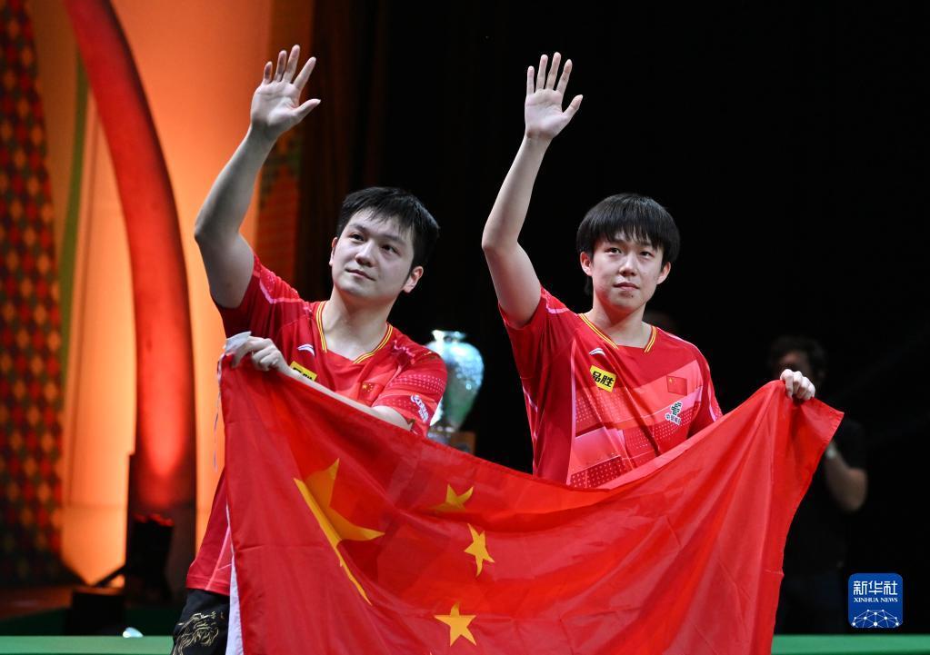当日,在南非德班进行的2023年世界乒乓球锦标赛男双决赛中,中国组合樊振东/王楚钦以3比0战胜韩国组合张禹珍/林钟勋,夺得冠军。新华社记者 陶希夷 摄