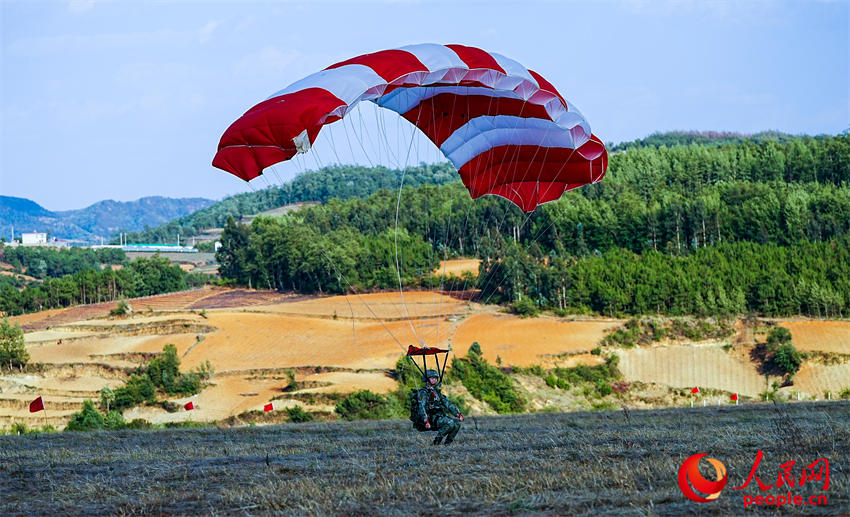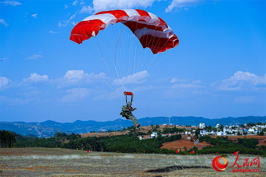 连日来,陆军第75集团军某旅在滇西高原组织开展伞降实跳训练。官兵们结合复杂战场环境,在实战背景下进行伞降,有效提升了特战尖兵的快速机动、空降突袭能力,全面加强了特战官兵的全域作战能力。(任鹏、晏恪、陈羽摄影报道)