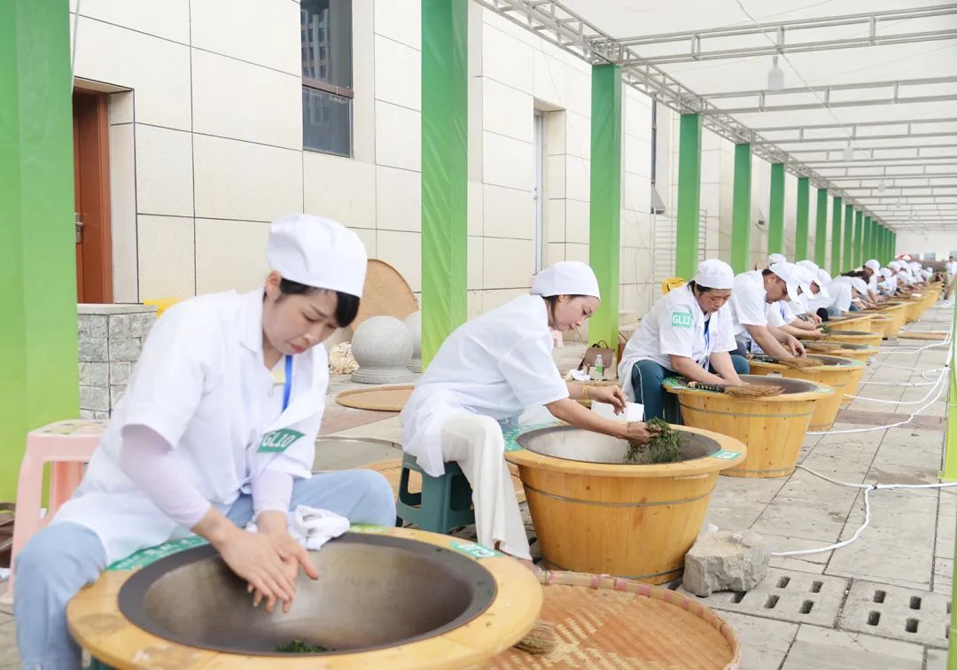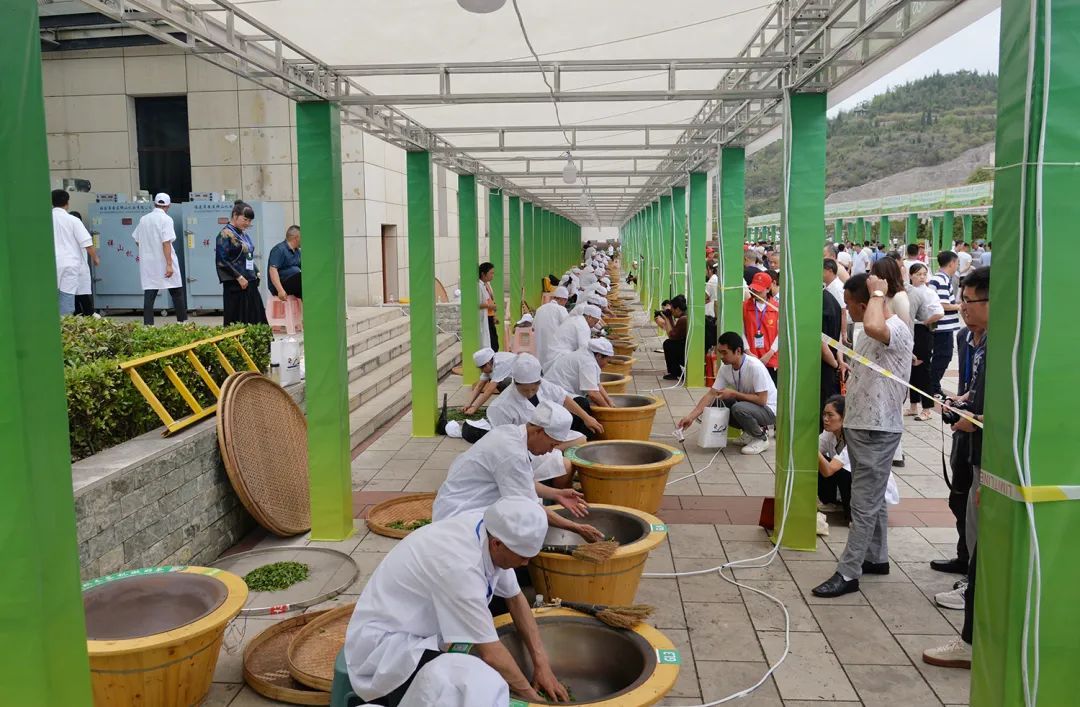 比赛现场,炒茶大锅一字排开,制茶选手统一着装,逐一进行器具检查、茶青筛选、鲜叶薄摊等前期工作,为赛事的顺利开展做足准备。比赛中,摊青、杀青、揉捻……制茶能手们娴熟的绿茶加工技艺吸引大量民众驻足围观,并不时发出赞叹声。随后,评委通过感官评审,对选手加工的绿茶外形、香气、汤色、滋味、叶底等进行综合评定。