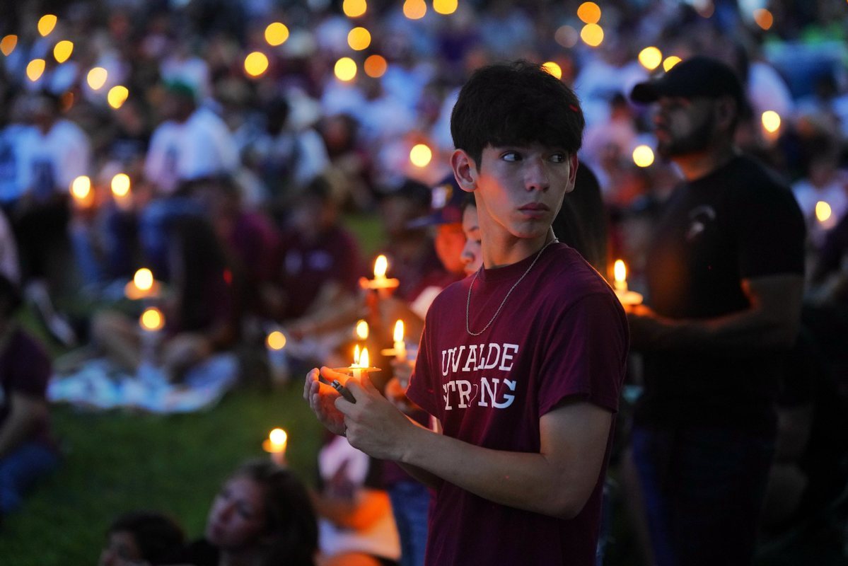 2023年5月24日,在美国得克萨斯州小城尤瓦尔迪,人们参加守夜仪式悼念校园枪击遇害者。图源:新华社