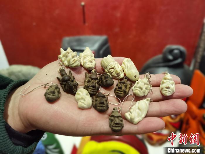 图为杨云霞制作的傩面具耳环。 周燕玲 摄