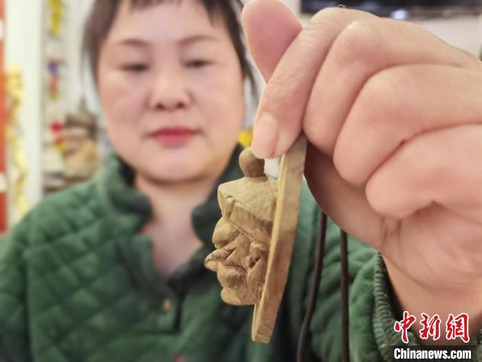 图为杨云霞制作的傩面具吊坠。 周燕玲 摄