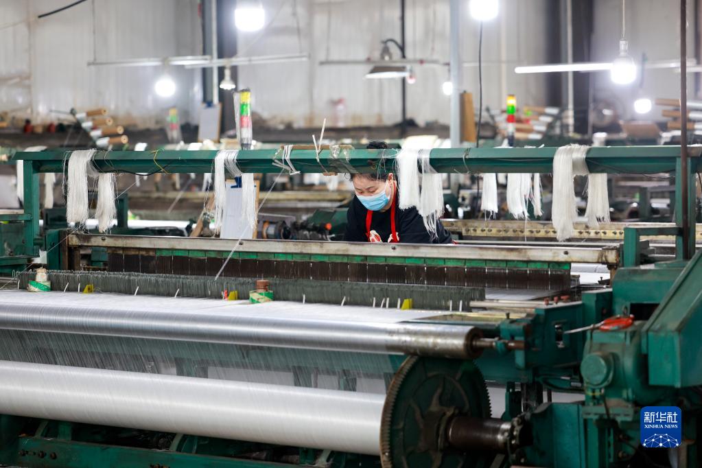 5月30日,工人在河北省唐山市丰南区王兰庄镇一家纺织企业生产。
