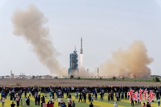 这是我国空间站应用与发展阶段首次载人飞行任务,也是中国航天员第11次叩问苍穹,吸引了2000多名科技人员和观众前来送行。