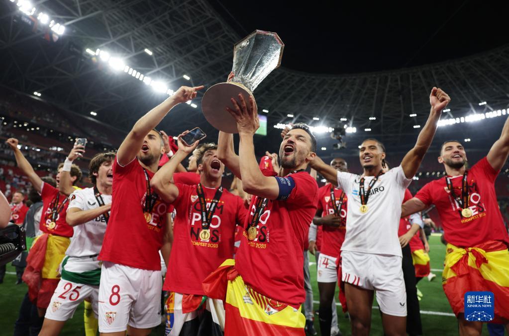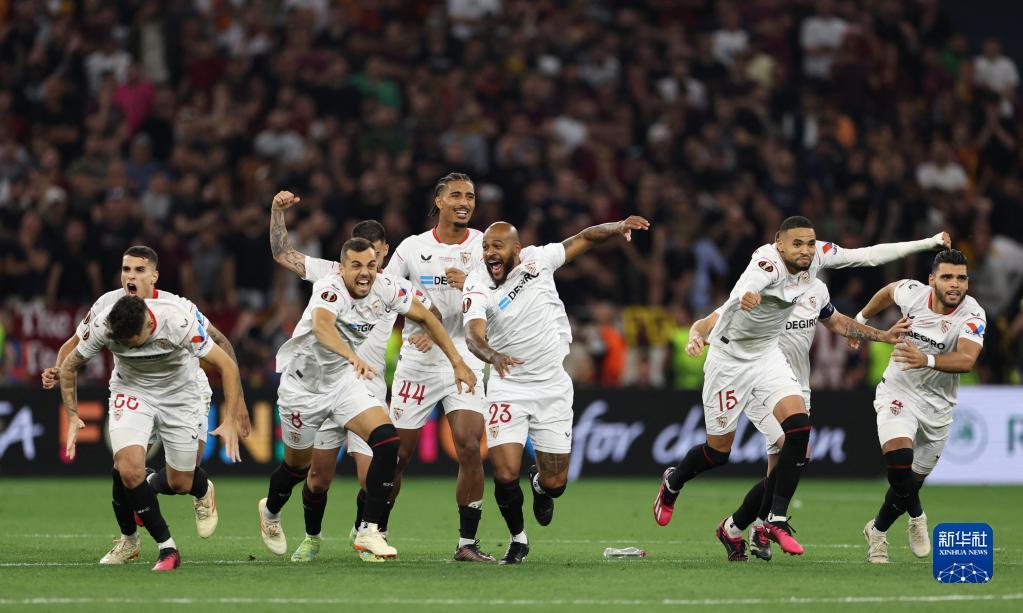当日,在布达佩斯举行的2022-2023赛季欧罗巴联赛决赛中,塞维利亚队与罗马队在常规时间和加时赛中战成1比1平,最终通过点球大战,塞维利亚队以总比分5比2获胜,夺得冠军。