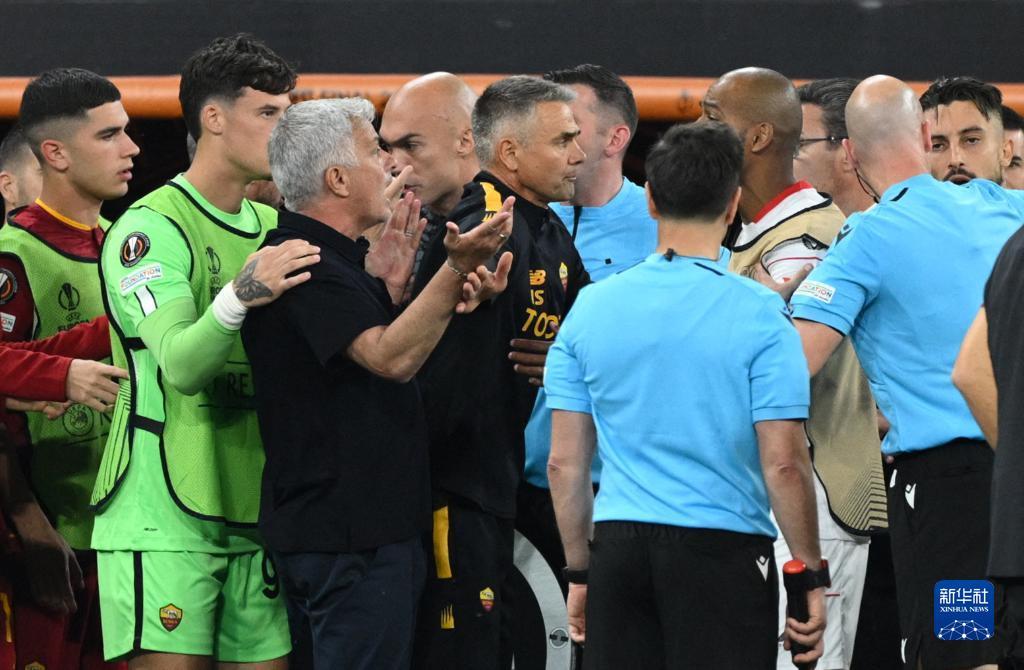 5月31日,罗马队主教练穆里尼奥与塞维利亚队替补席成员发生冲突。新华社/路透