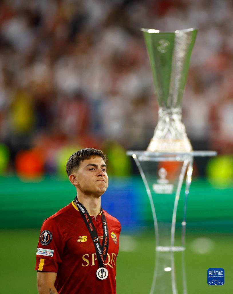 5月31日,罗马队球员迪巴拉在颁奖仪式上。新华社/路透