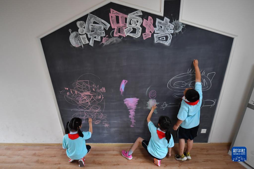 5月31日,在长沙市岳麓区实验小学“心语花溪”心理成长中心的情绪宣泄室,学生通过涂鸦放松心情。