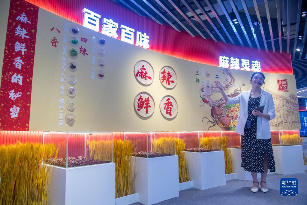 5月30日,在位于重庆市大渡口区的重庆小面产业园,工作人员在介绍重庆小面的特点。新华社记者 唐奕 摄
