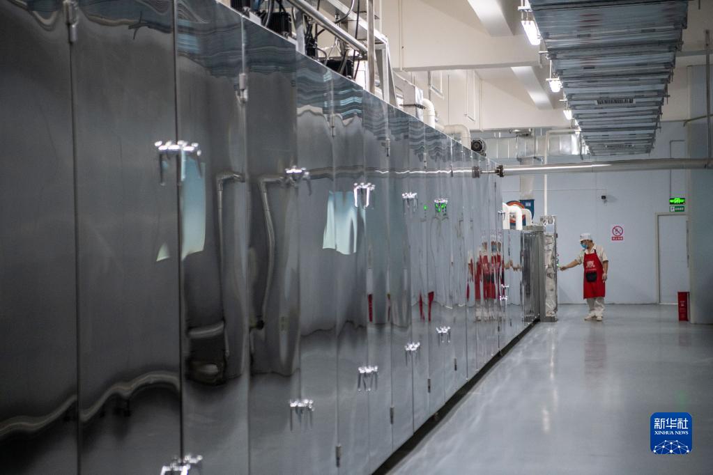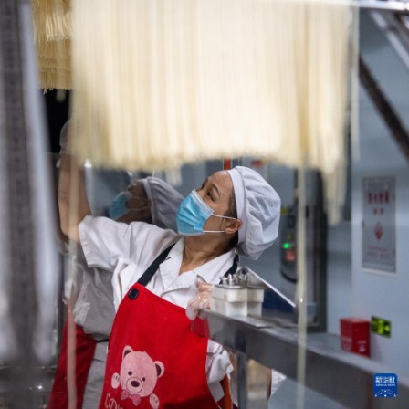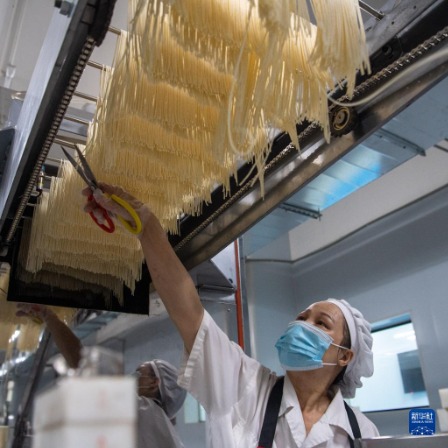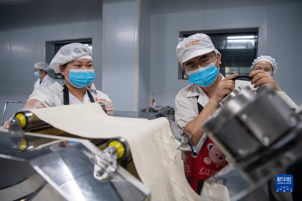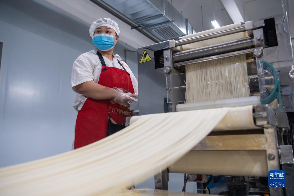 6月1日,在位于重庆市大渡口区的井谷元食品科技有限公司生产车间内,工人在小面生产线上工作。新华社记者 唐奕 摄