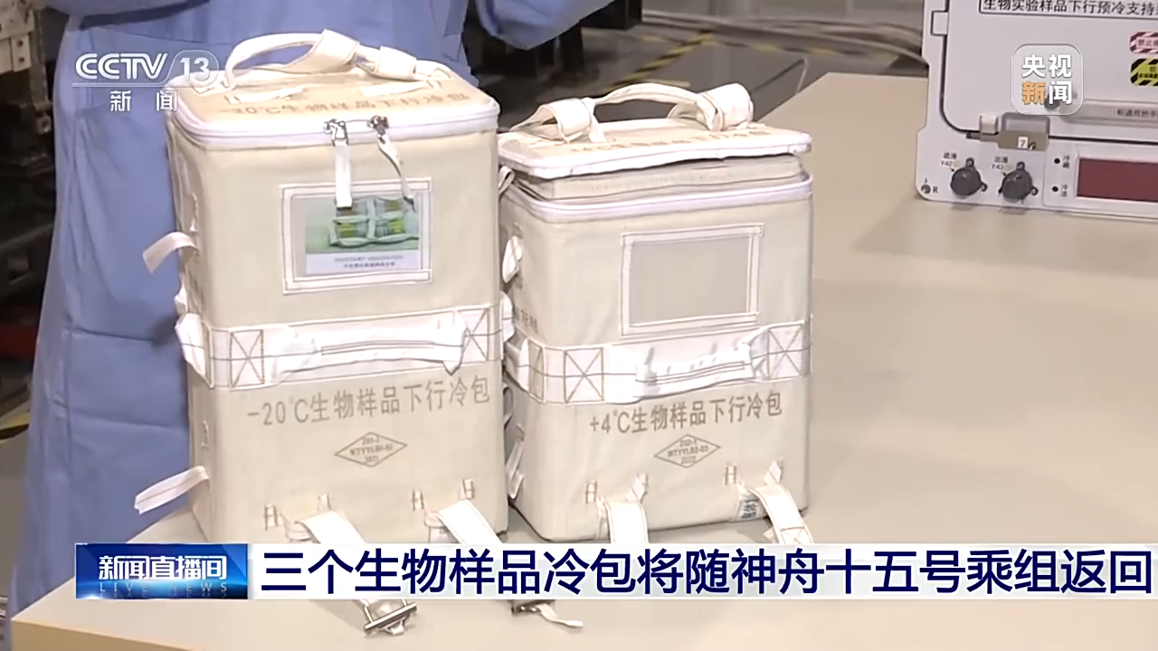 总台央视记者 帅俊全:在我面前就是空间站太空实验的样品冷包,可以看到它分为大小两种不同的规格,而且根据样品的需求可以保存为4℃和-20℃,就好像我们冰箱的冷冻和冷藏一样。更为先进的是,它采用了特殊的工艺和材料,整体做得非常紧凑,结构很小巧。这样的结构可以确保它在火箭发射和飞行器返回的时候,抵抗强大的冲击力和震动,从而确保整个生物样品完好无损。