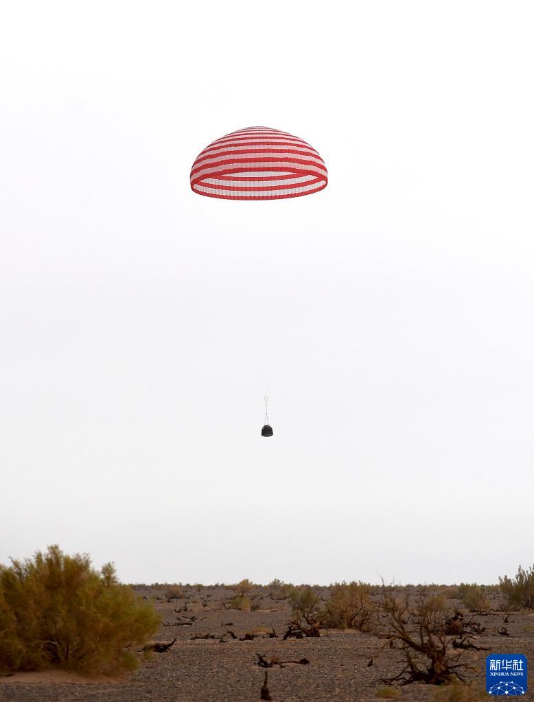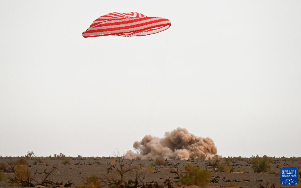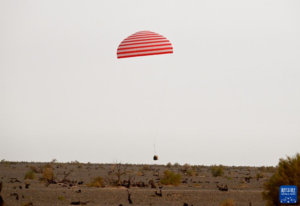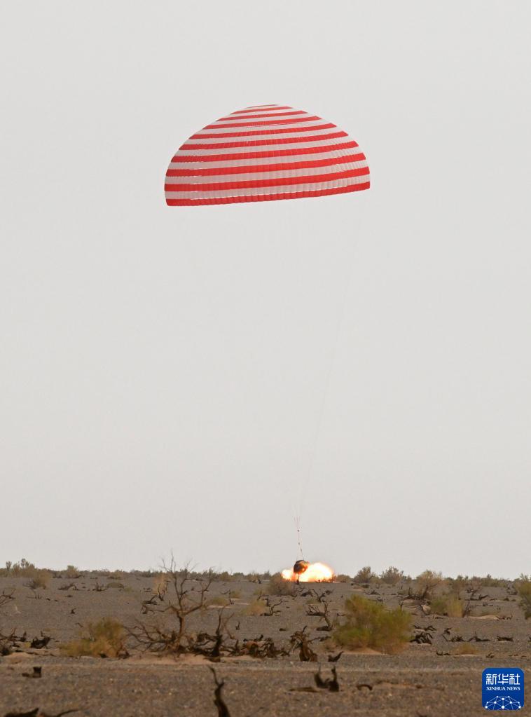 6月4日,神舟十五号载人飞船返回舱在东风着陆场成功着陆。新华社记者 连振 摄