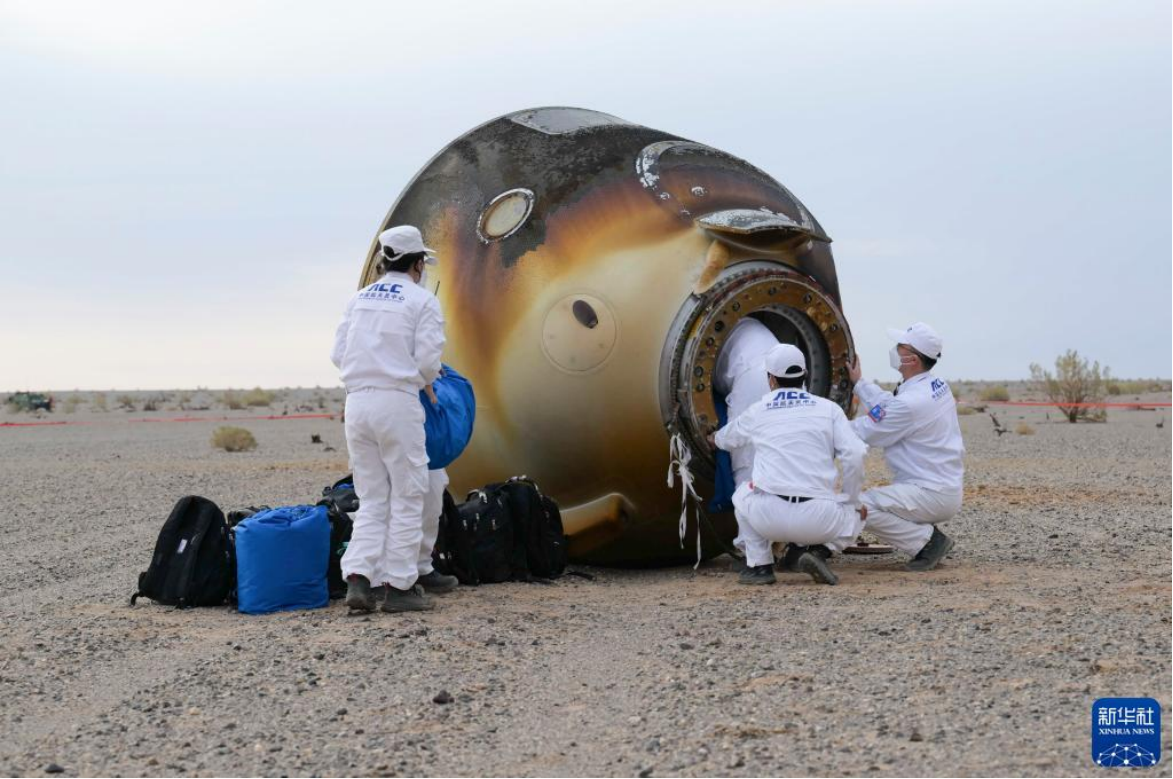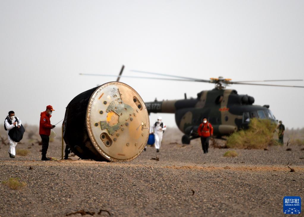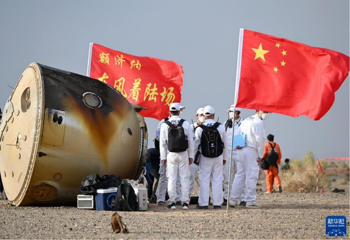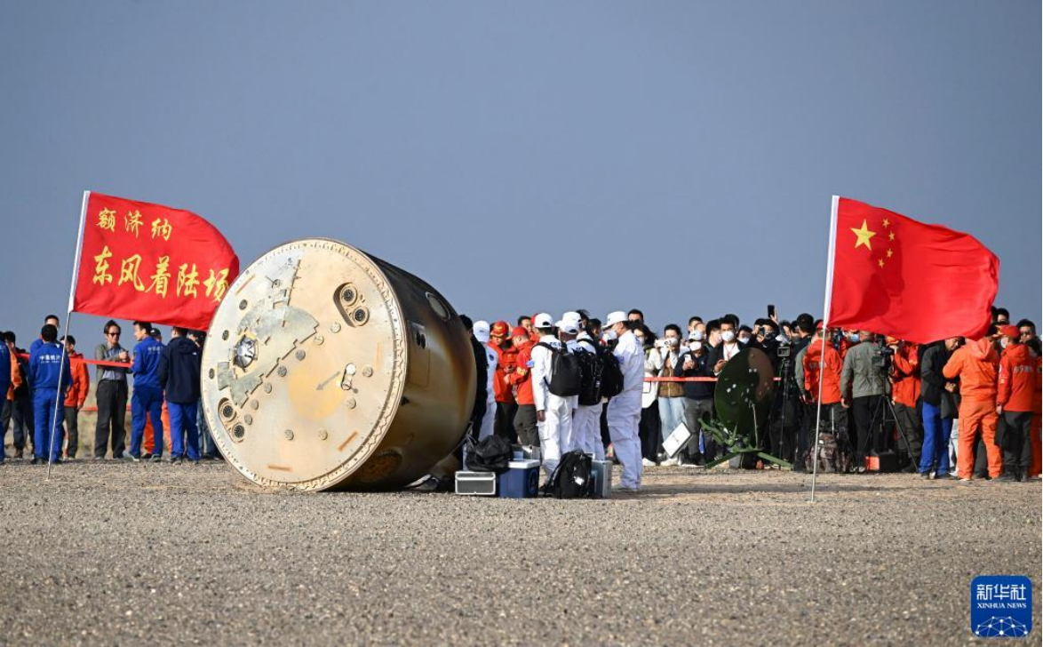 6月4日,神舟十五号载人飞船返回舱在东风着陆场成功着陆。新华社记者 连振 摄