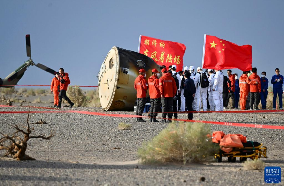 6月4日,神舟十五号载人飞船返回舱在东风着陆场成功着陆。新华社记者 李志鹏 摄