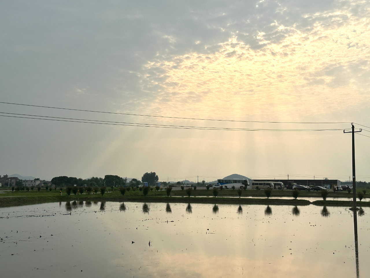 阳光透过云层洒在稻田之上 工人日报记者 摄