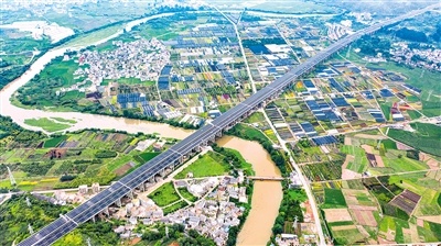 由贵州高速公路集团组织建设的都安高速公路惠水大桥(无人机照片)。记者 陶亮 摄