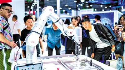 ▲参观者在数博会展馆了解智能机械。 记者 陶亮 摄