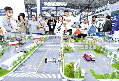 ▲观众参观智能交通系统。 记者 杨文斌 摄
