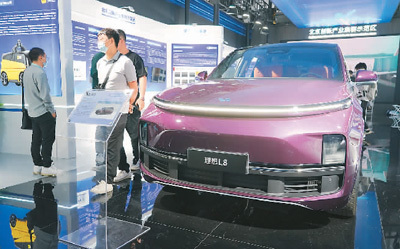 日前,在北京举行的中关村论坛展览(科博会)上,新能源汽车及相关产品成为人们关注的焦点。图为会上展出的新能源汽车。 新华社记者 任超摄