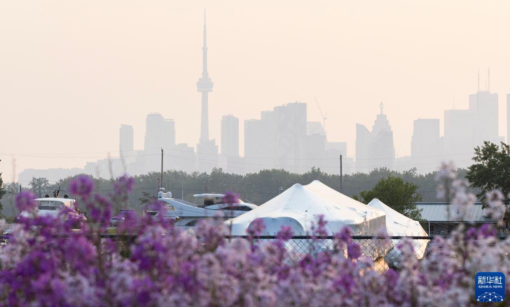 6月6日,加拿大多伦多市区笼罩在烟尘中。