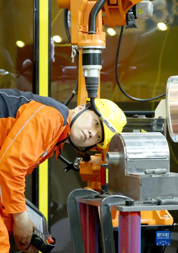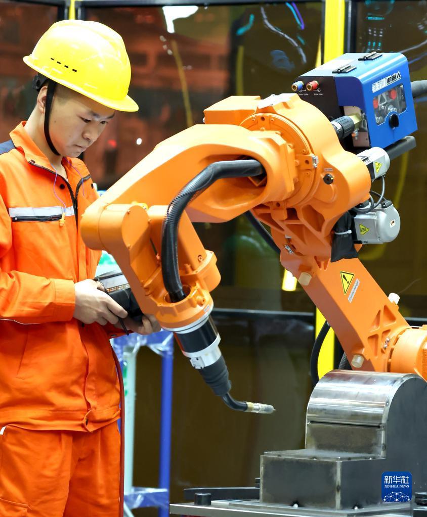 6月7日,参赛选手在焊接设备操作工—机器人项目的比赛中。