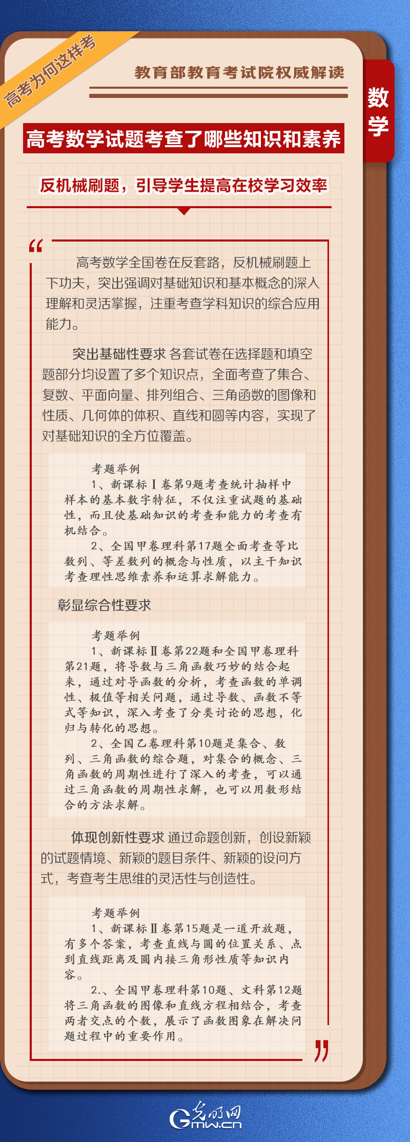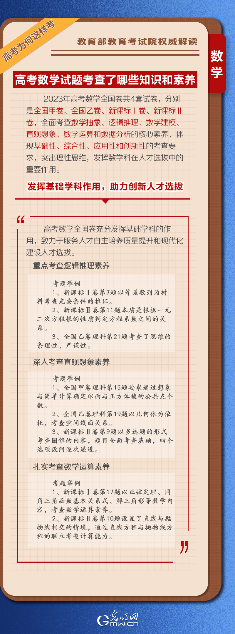 原标题:【高考为何这样考】学习卡丨2023年高考数学题考查了哪些知识和素养