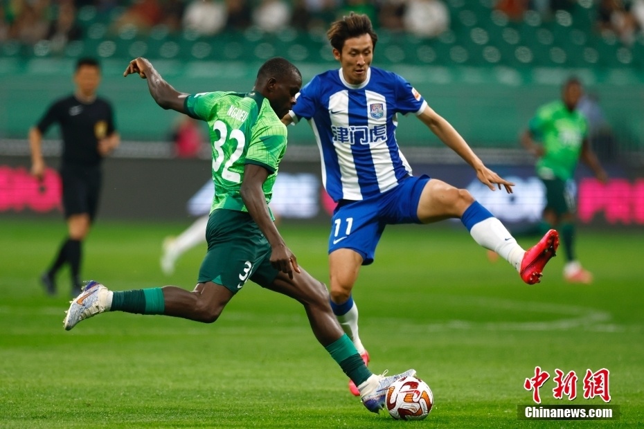 资料图:北京国安与天津津门虎比赛中。中新社记者 富田 摄