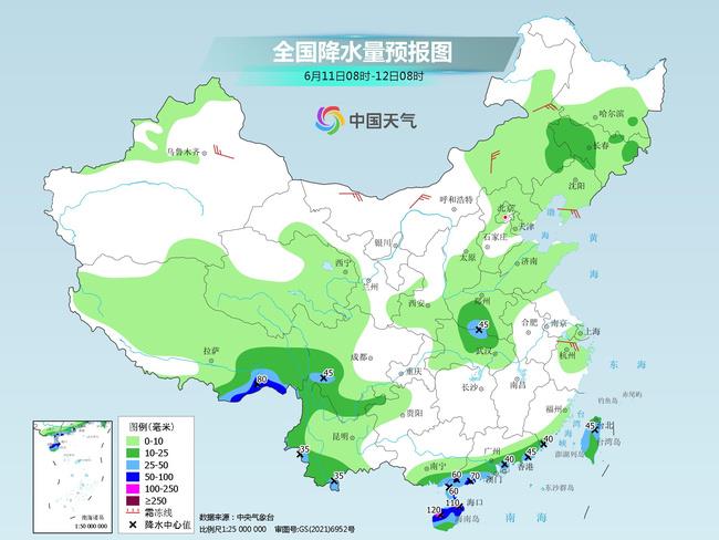 今明天(6月11日至12日),华南等地部分地区雨势仍然较强,其中,广西、广东、海南等地部分地区有大到暴雨,局地有大暴雨。上述地区需加强防范强降雨可能引发的山体滑坡、山洪、城乡内涝等次生灾害。此外,新疆高温今日仍不“退烧”,局地或达40℃以上,下周中后期,高温天气“主战场”将转移至华北、黄淮一带。