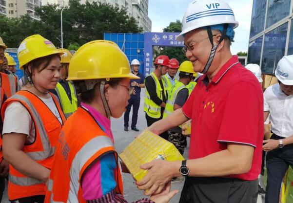 原标题:海南省总到海口中交国际中心项目开展送清凉活动