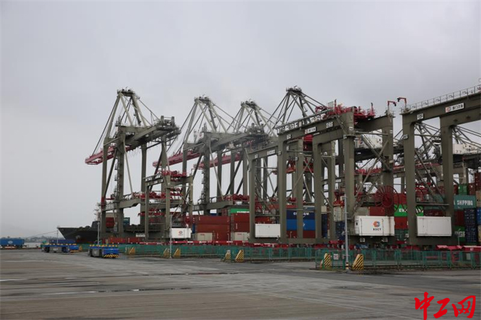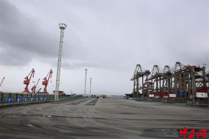 厦门远海自动化码头上,自动化设备在雨中正常运作。 中工网记者朱洁英 摄