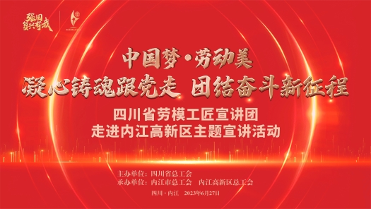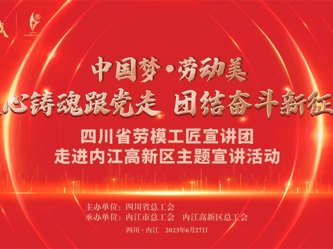 “中国梦·劳动美——凝心铸魂跟党走 团结奋斗新征程”四川省劳模工匠宣讲团走进内江高新区主题宣讲活动 倾听劳模故事,传递榜样力量!为深入学习宣传贯彻习近平新时代中国特色社会主义思想和党的二十大精神,大力弘扬劳模精神、劳动精神、工匠精神,着力强化职工思想政治引领,6月27日上午9:30,四川省总工会主办,内江市总工会、内江高新区工会承办的“中国梦·劳动美——凝心铸魂跟党走 团结奋斗新征程”四川省劳模工匠宣讲团走进内江高新区主题宣讲活动如期举行。