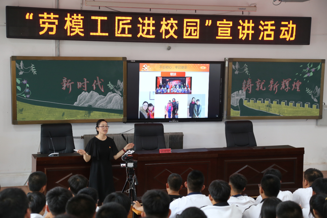为大力弘扬劳模精神、劳动精神、工匠精神,引导职业院校学生走技能成才、技能报国之路,6月26日,辽宁省本溪市总工会走进桓仁满族自治县职业教育中心,组织开展了“劳模工匠进校园”宣讲活动。全国劳动模范、桓仁东方红电站有限公司安全技术部部长兼镁粉车间主任、工程师杨英丽为职教中心200余名学生作了题为《弘扬劳模工匠精神 用奋斗铸就梦想》的主题宣讲。