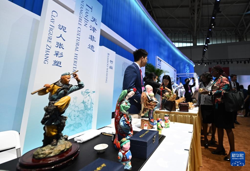 6月27日,与会嘉宾在第十四届夏季达沃斯论坛文化之夜现场了解天津非遗项目。