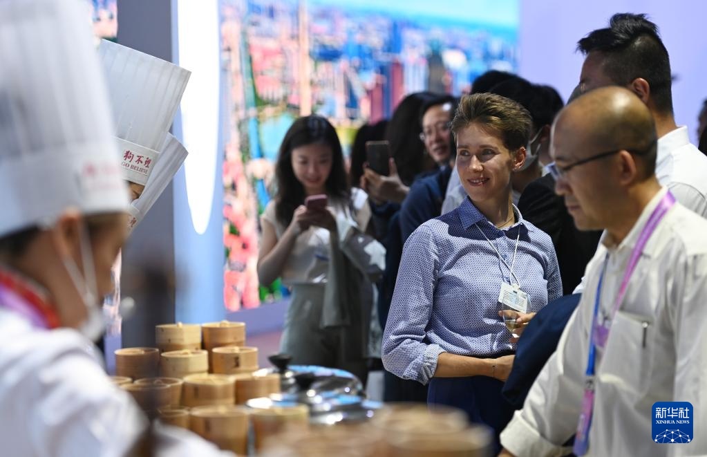 6月27日,与会嘉宾在第十四届夏季达沃斯论坛文化之夜现场了解天津特色美食。