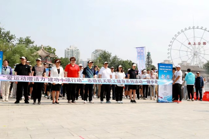 6月25日,由天津市委市级机关工委、市总工会、团市委、市妇联、市体育局、市城管委主办,市级机关工会联合会承办的“爱运动增活力 建功十项行动”市级机关职工健身系列活动启动仪式暨健步走活动在天津水上公园举行。
