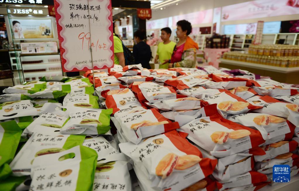 6月29日,游客在位于博后村的亚龙湾国际玫瑰谷选购鲜花饼。