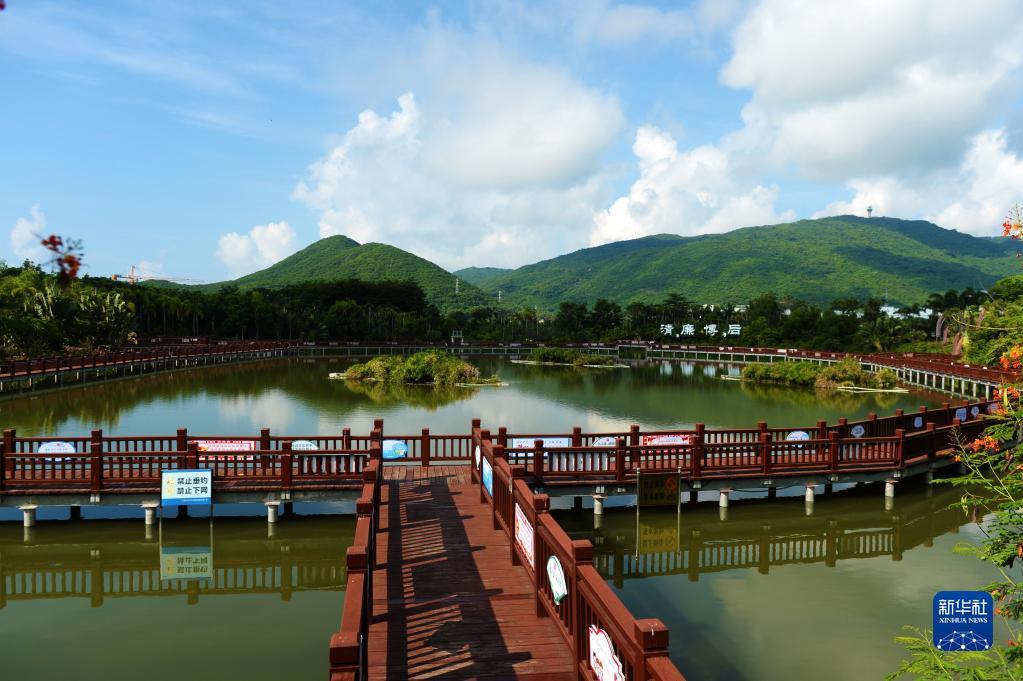 这是6月28日拍摄的博后村哎岬湖公园,该公园由臭水塘改造而成。