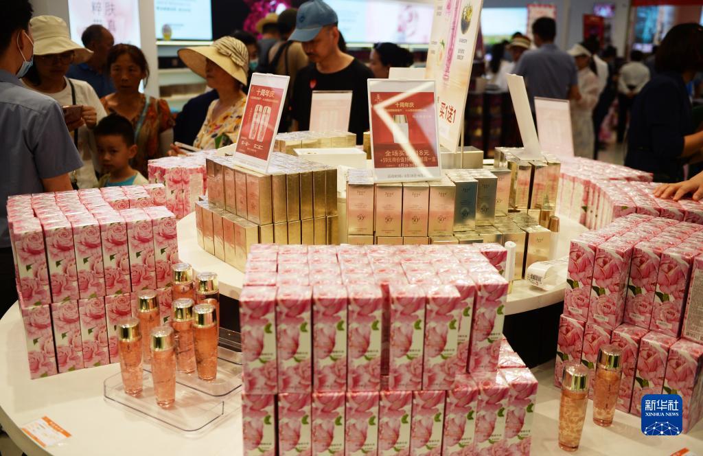 6月29日,游客在位于博后村的亚龙湾国际玫瑰谷选购玫瑰美妆产品。