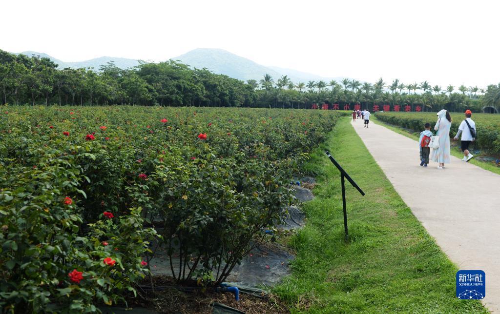 6月29日,游客在位于博后村的亚龙湾国际玫瑰谷游玩。