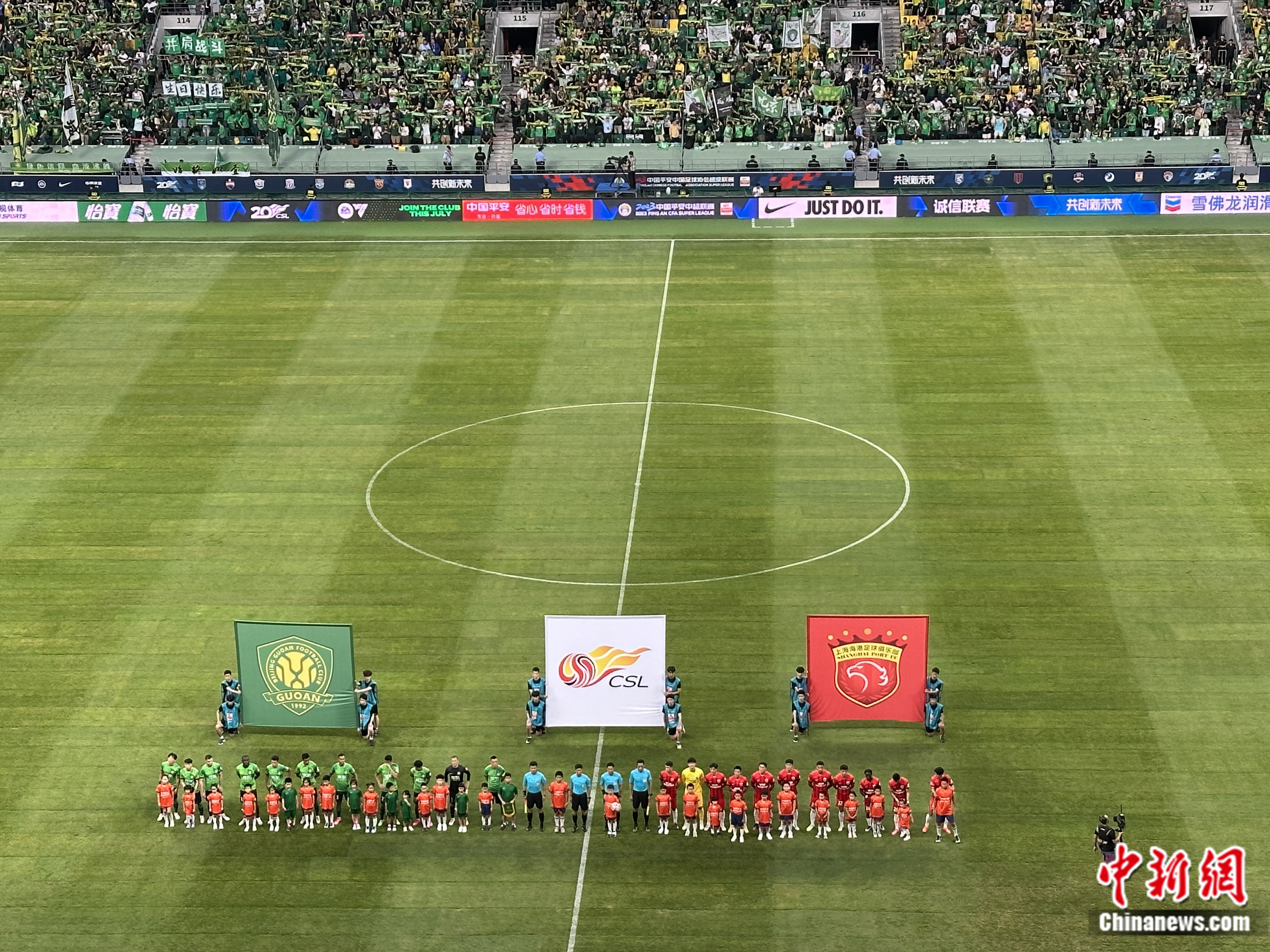 北京国安与上海海港比赛入场仪式。中新网记者 卞立群 摄