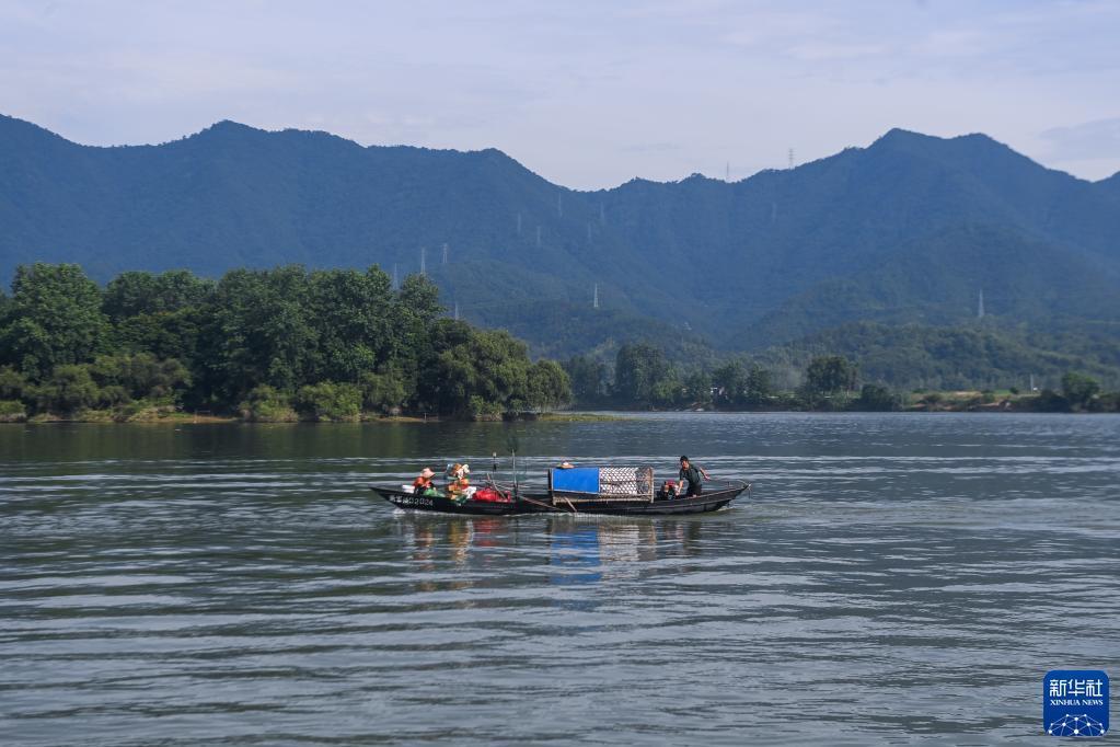 7月3日,渔民驾驶着满载的渔船行驶在富春江面上。新华社记者 徐昱 摄