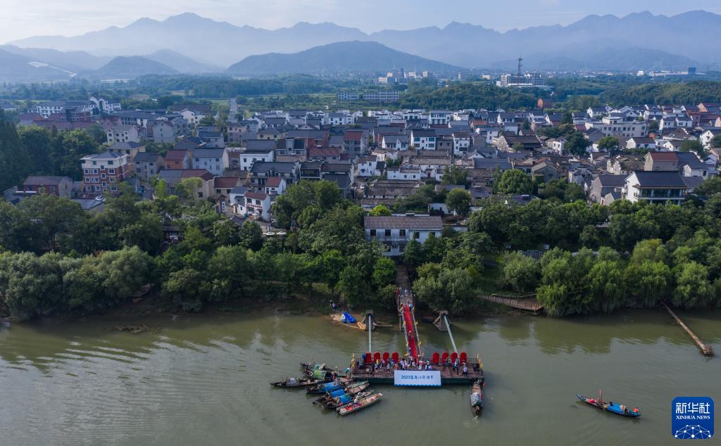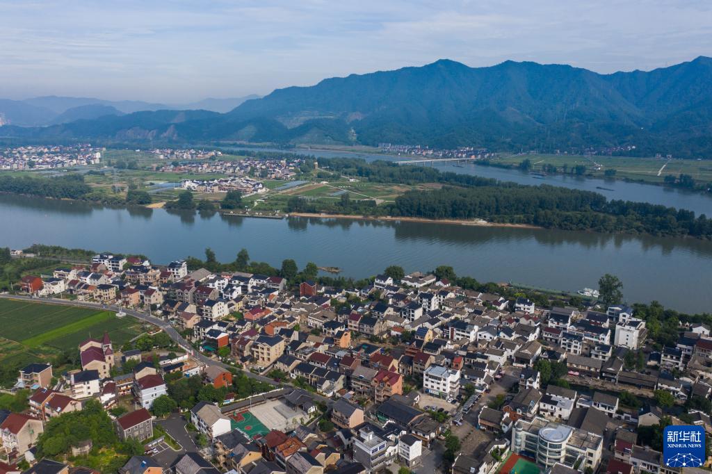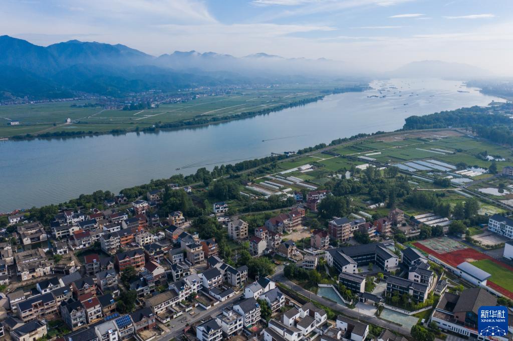 7月3日,空中俯瞰富春江畔的东梓关村(无人机照片)。新华社记者 徐昱 摄