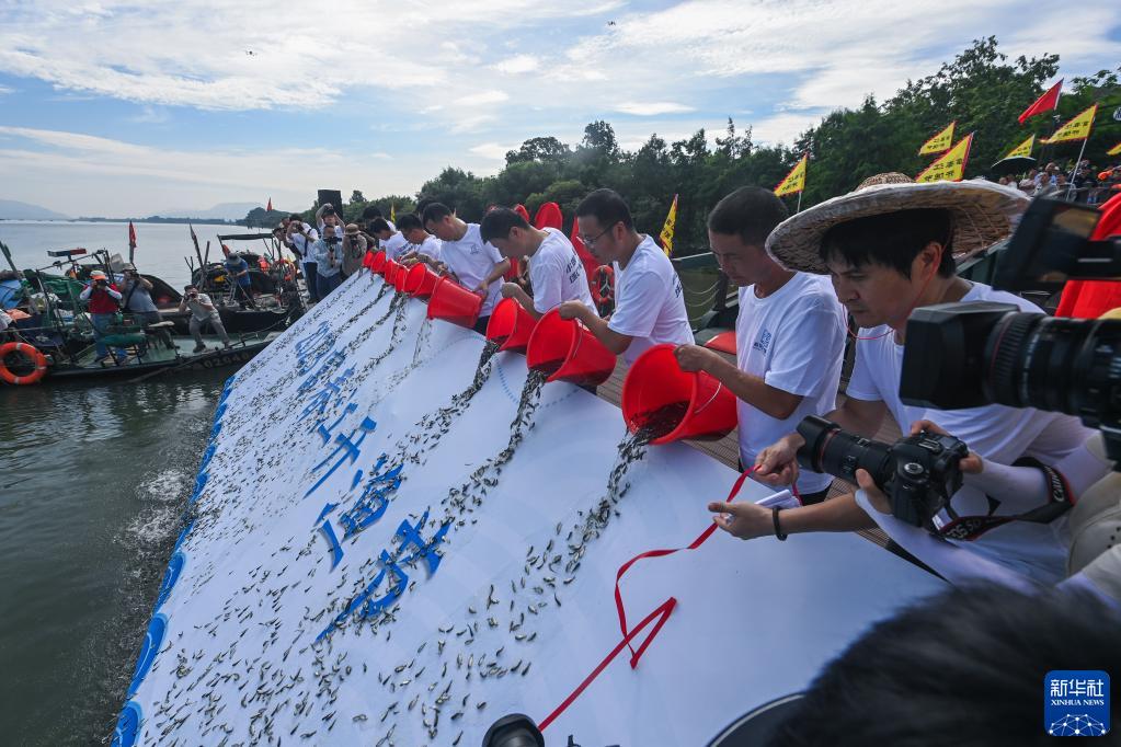 7月3日,富春江开渔节现场举行了增殖放流活动。新华社记者 徐昱 摄