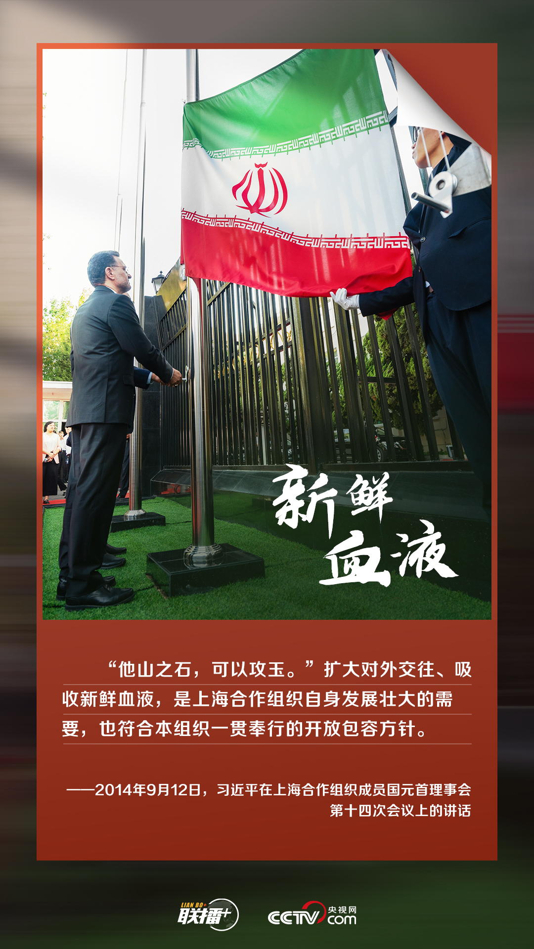 7月4日下午,伊朗国旗在位于北京的上合组织秘书处升起,标志着伊朗正式加入“上合大家庭”。从最初6个成员国到如今涵盖26个国家,上合组织的不断扩员,彰显出“上海精神”的生命力、凝聚力和吸引力,也为上合组织发展注入了新的生机与活力。