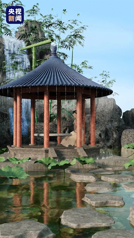 “自雨”建筑:唐朝人想办法把水引到房顶上,再让水从房顶落下,仿佛下雨一样。以达到解暑降温效果。据记载,白居易曾把剖开的竹筒相接,做成“高架引水渠”,从山泉中引水。让泉水从他草堂的屋檐倾落,在炎热中感受清凉。