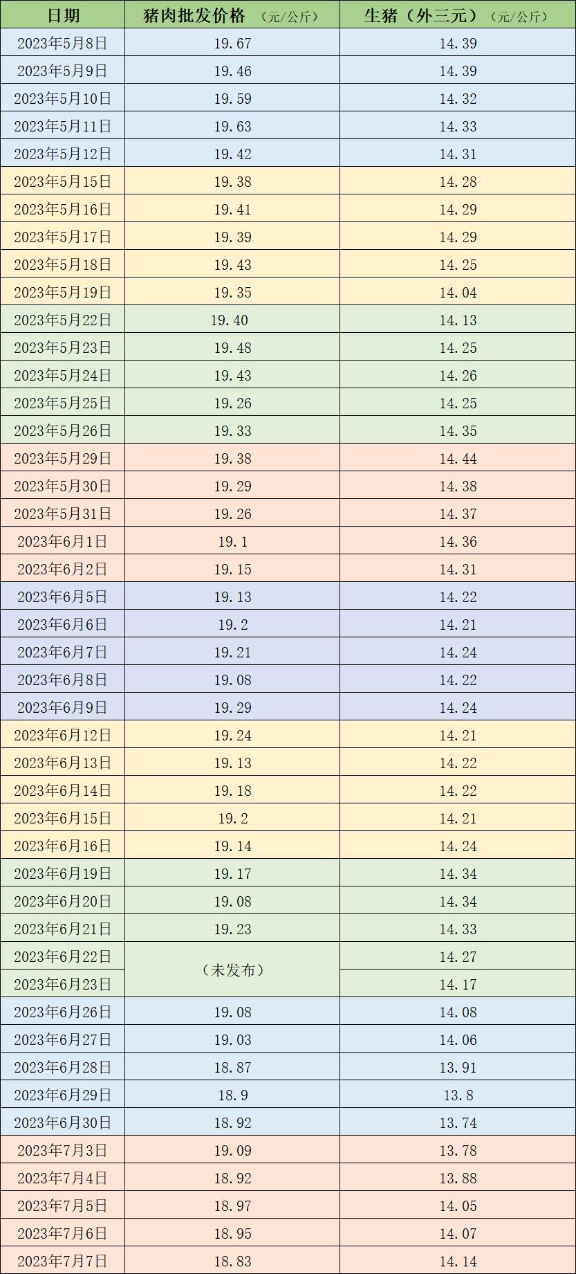 据农业农村部监测,7月7日,全国农产品批发市场猪肉平均价格为18.83元/公斤,与上周五(6月30日)的18.92元/公斤相比,下降0.5%。本周的平均价格为18.95元/公斤,与上周18.96元/公斤的均价相比,基本持平。
